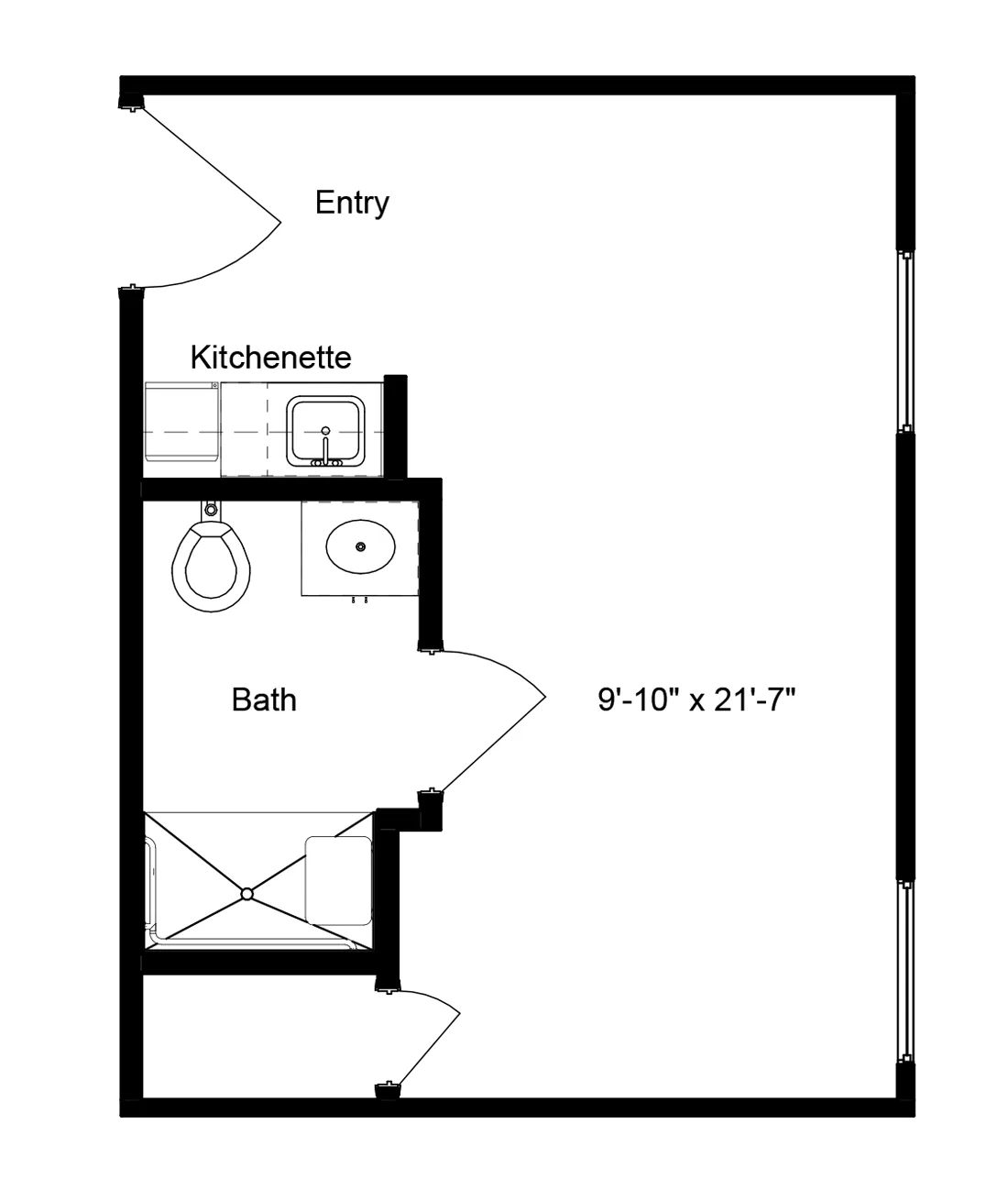 - Functional Floor Plans – Spacious studio, one-bedroom, and one-bedroom deluxe layouts with kitchenettes, private baths, and individually controlled air temperature